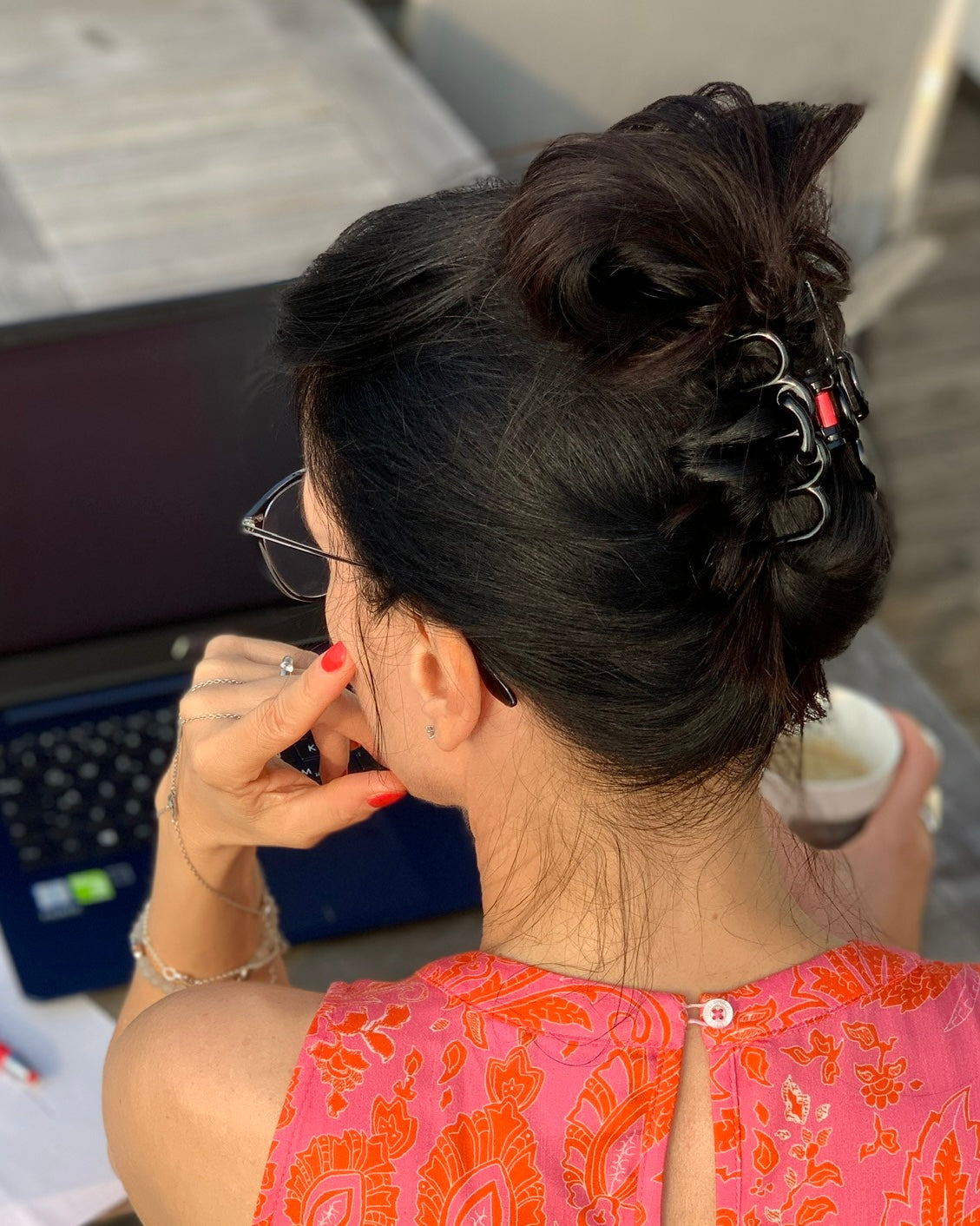 Am Ende mit etwas Druck die Bügel in die Klammer schieben. Sie fixieren wie zusätzliche Haarnadeln deinen Style und die doouup® verschwindet nahezu ganz im Haar.